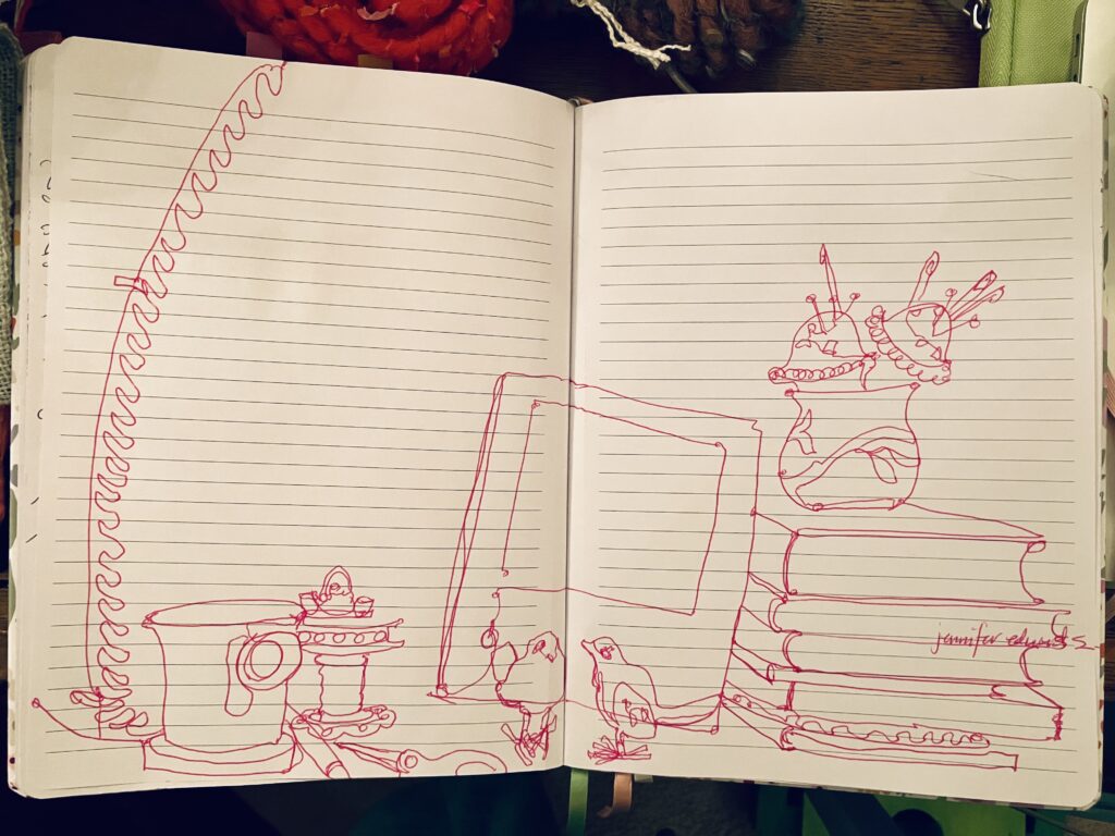 I suppose it won’t be secret after this post, but I spent the month of October having my own Inktober without posting it anywhere on social media. I really enjoyed that! A lot! To be honest, my daily commitment to draw every day had been going on long before October 1st, and I always use ink of some kind, be it a fine liner, brush pen, calligraphy pen, or plain ole Bic pen. I draw first thing in the morning, often in my writing journal, with the same Bic pen that I write with. Later in the day, I draw in my sketchbook and use whatever tickles my fancy. I’ve made a slide show of October drawings, both the morning ones as well as some of the other sketches and drawings from my larger sketchbook. I hope you enjoy this little trip through the previous month. 💖