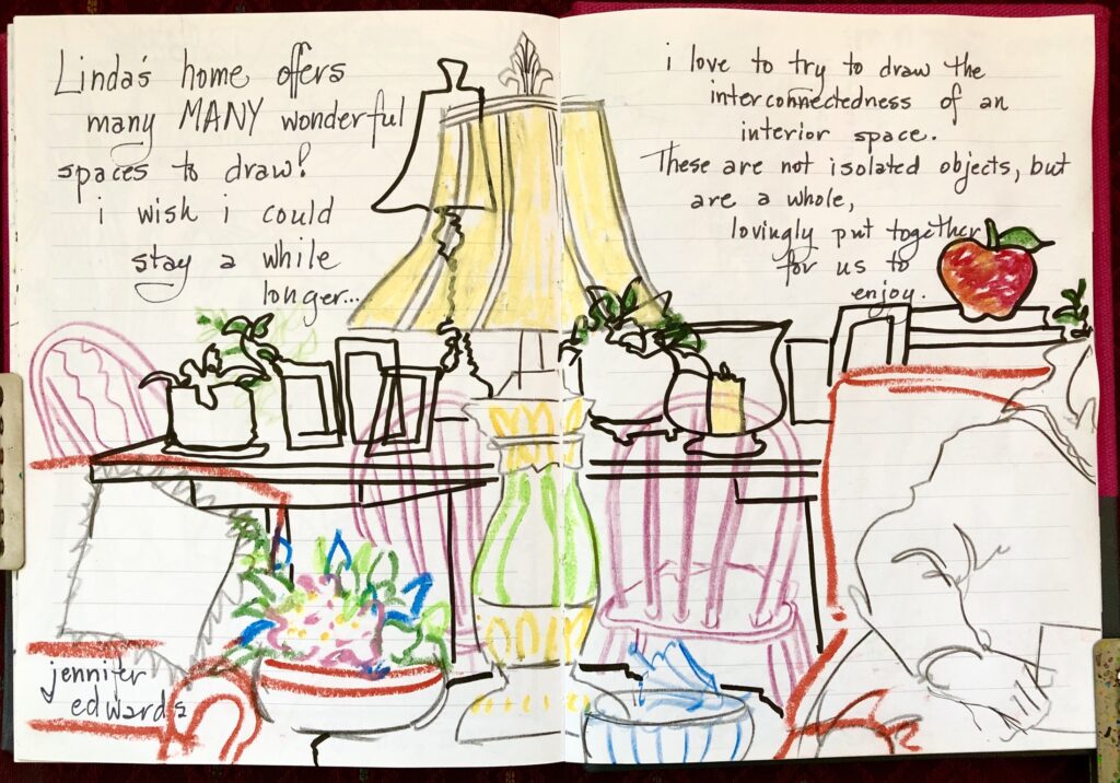 On and on each drawing woos and entices you to keep drawing and even to draw the space around you or the people sitting nearby.