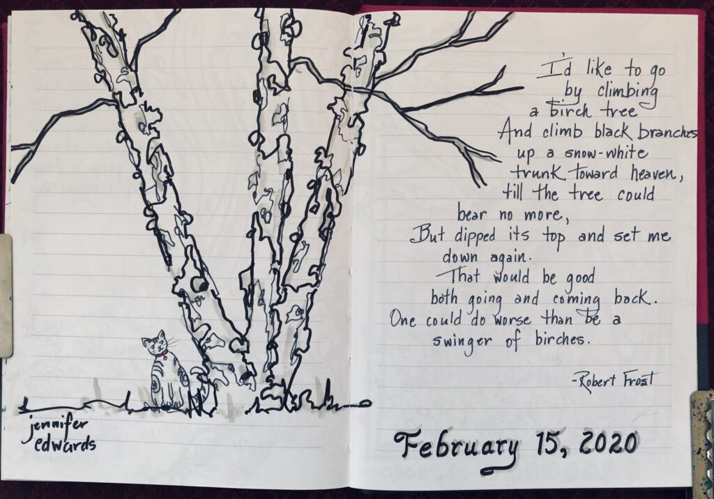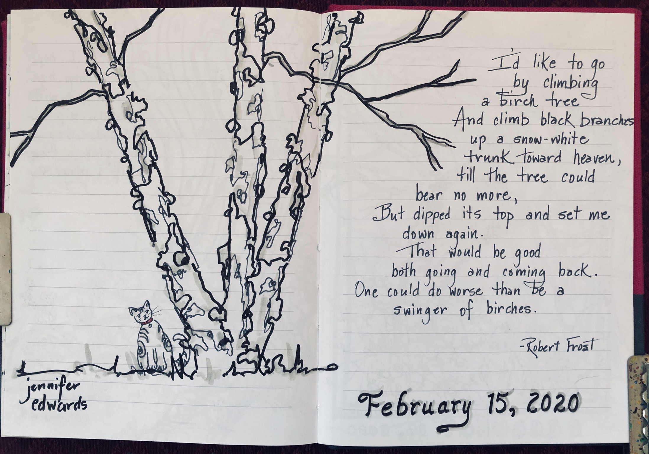 Like Frost’s poem about swinging on birches…I too would like to go…perhaps by climbing it…but preferably by drawing the birch tree…