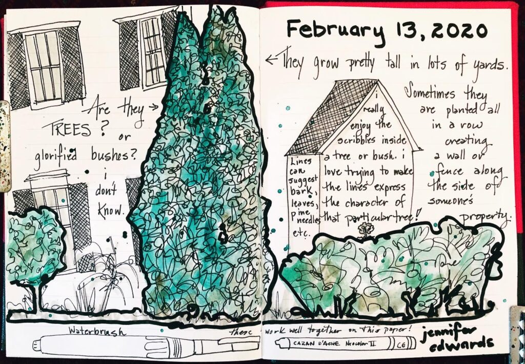 This is just the way it is. When you draw, there will be more to draw. And you’ll find yourself so in love with drawing your world, whether real or imagined, that you fall asleep thinking of tomorrow’s tree, or whether you’ll have time for a few more drawings than just the one daily tree drawing.