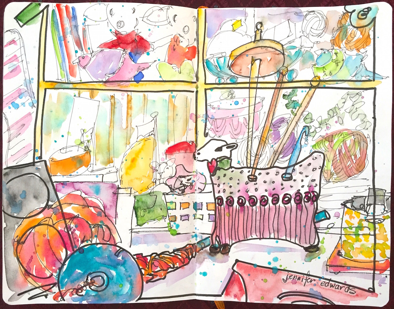 ****Note on the above sketch: I have taken to drawing jumbles in my home. These are places where lots of STUFF seems to assemble itself into a colorful mess. They are great places to draw!! Drawing the jumbles of my life helps me see that there is beauty in messes. And it also delays the tidying up…:0