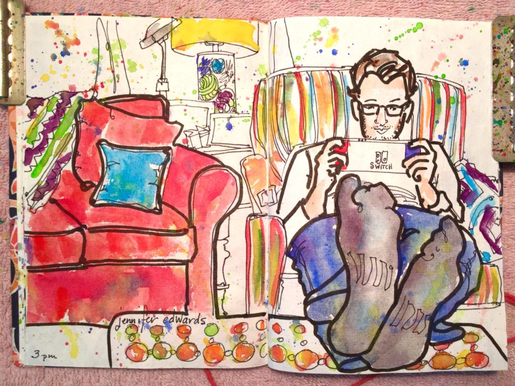 To Notice & Observe, is like dancing in puddles. When life gives us rainy days, as it has in abundance here in central North Carolina, it is best to notice where the puddles are and dance in them. Drawing and painting are perfect puddle activities, as are any other creative endeavors. Knitting, spinning, weaving and the like are all beautiful ways to notice what’s going on in your life and to observe it from a place of beauty. Writing is also excellent…I write every morning all the noticings and observations of both my interior and exterior worlds.