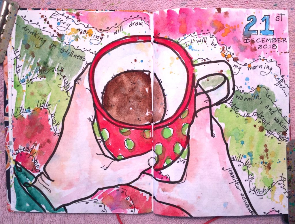 On the 20th of December 2018, I began a new sketchbook which was given to me by a dear friend. To be sure I had not finished the 2 or 3 other sketchbooks I have going, but I had been wanting a book of days, one without a spiral in the middle, one in which to drawcument the days as I notice and observe them. It was also to be an anchor for me as I faced the craziness of the holidays. It has indeed been that anchor.