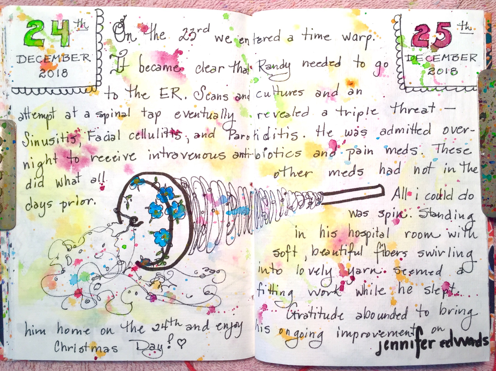 On the 20th of December 2018, I began a new sketchbook which was given to me by a dear friend. To be sure I had not finished the 2 or 3 other sketchbooks I have going, but I had been wanting a book of days, one without a spiral in the middle, one in which to drawcument the days as I notice and observe them. It was also to be an anchor for me as I faced the craziness of the holidays. It has indeed been that anchor.