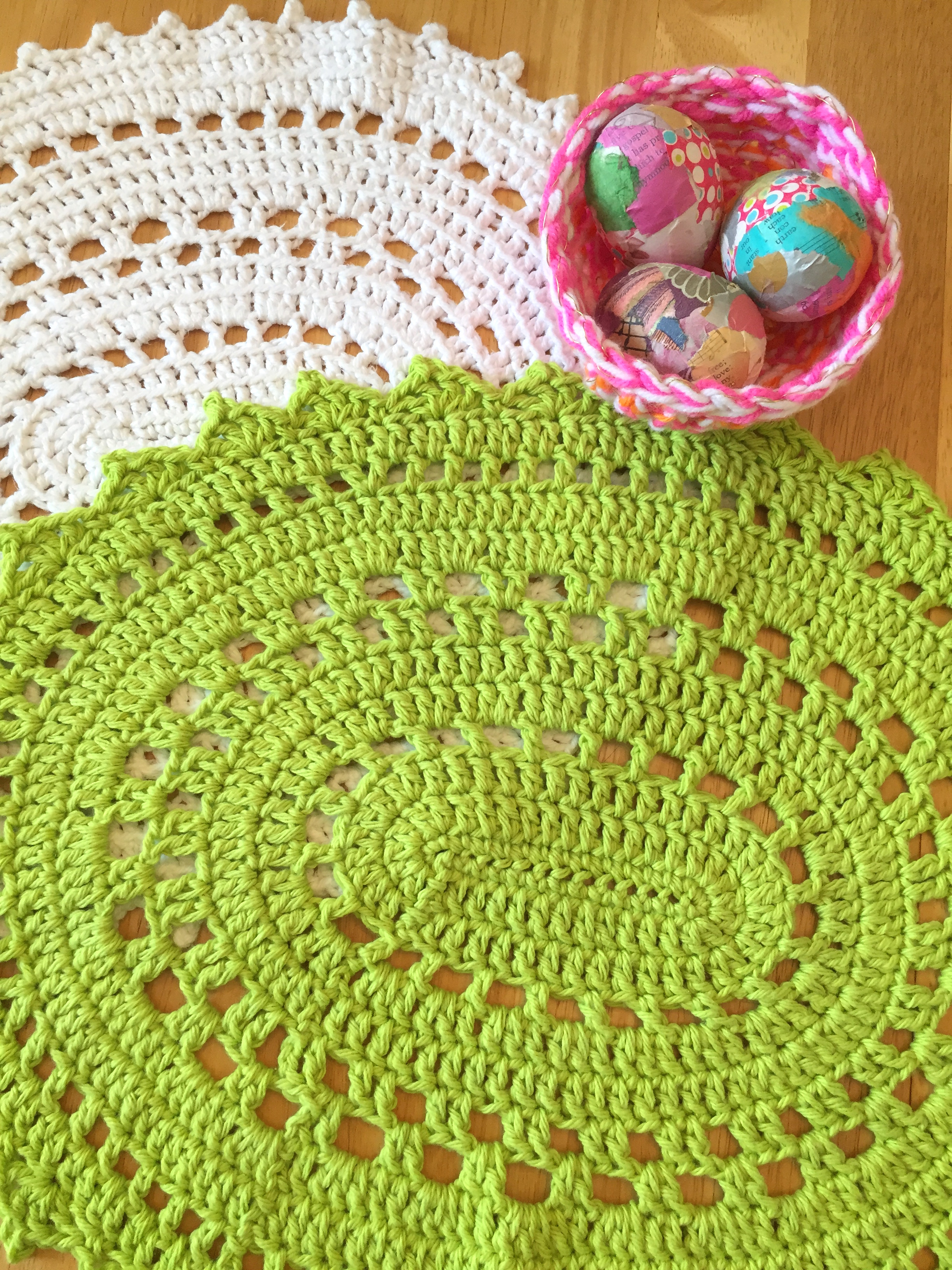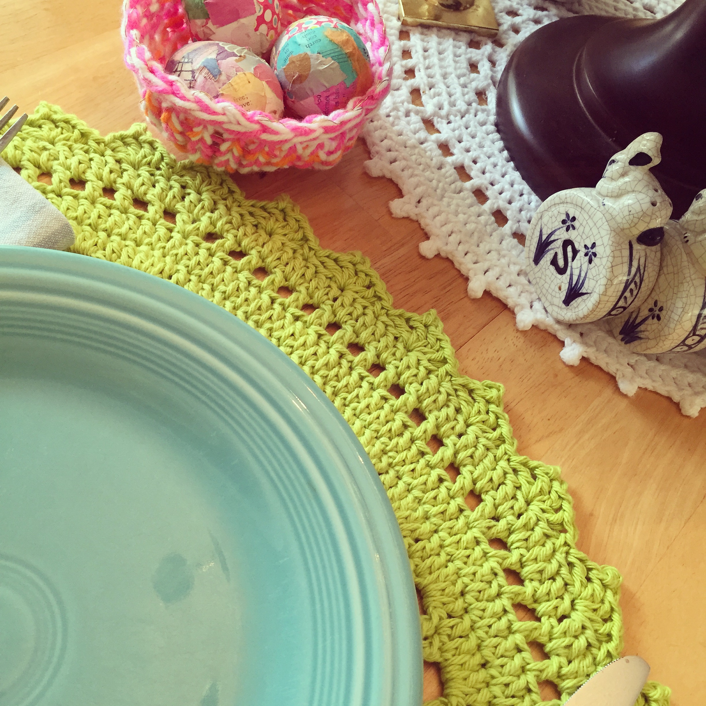 Some years ago, my mom gave me a couple of white cotton placemats that my Grandma Bowen had crocheted. She was an avid maker (artist, knitter, crocheter, embroiderer), as is my mom, and now me, and well… my girls are makers too!! It’s lovely to have a heritage of creativity, art and making!