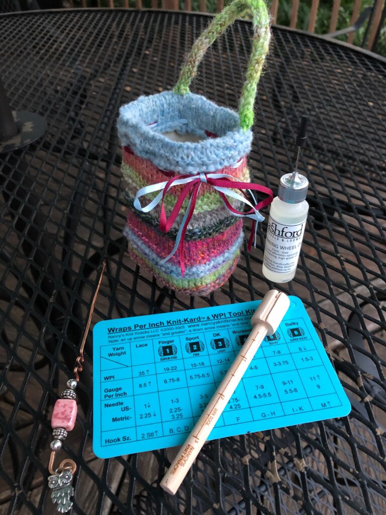 After a bit of pantry-raiding and idea-casting, here’s what I made! I hope you like it, whether you are a spinner or a knitter or you just want something cute to hang and be useful in so many ways. I’m sharing the pattern and directions with you here so that you can make one too!