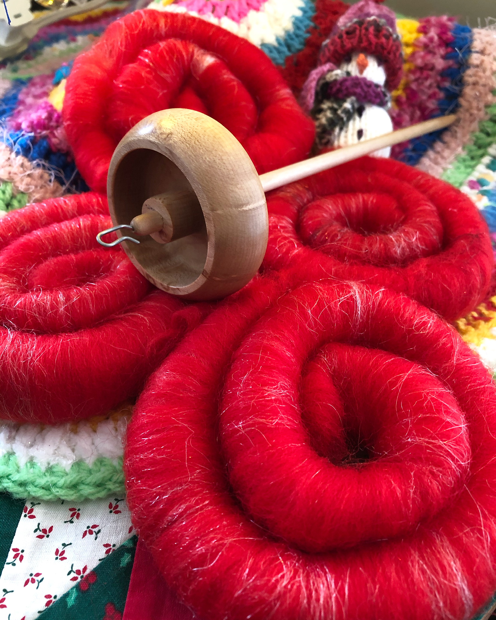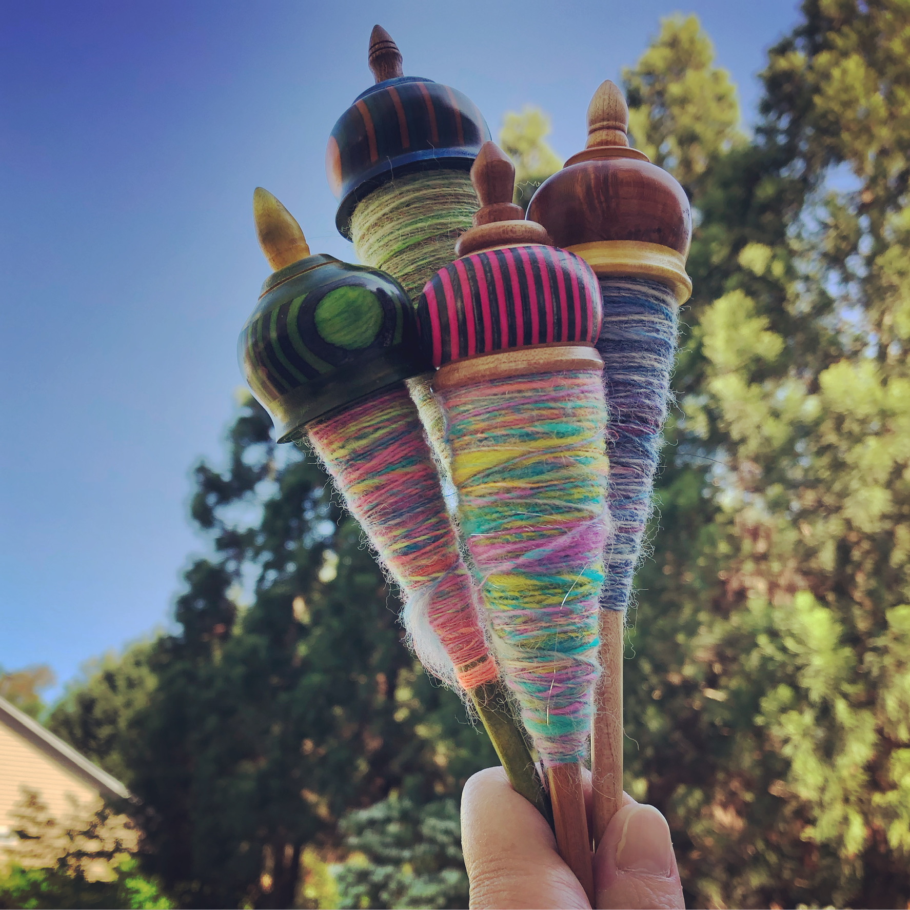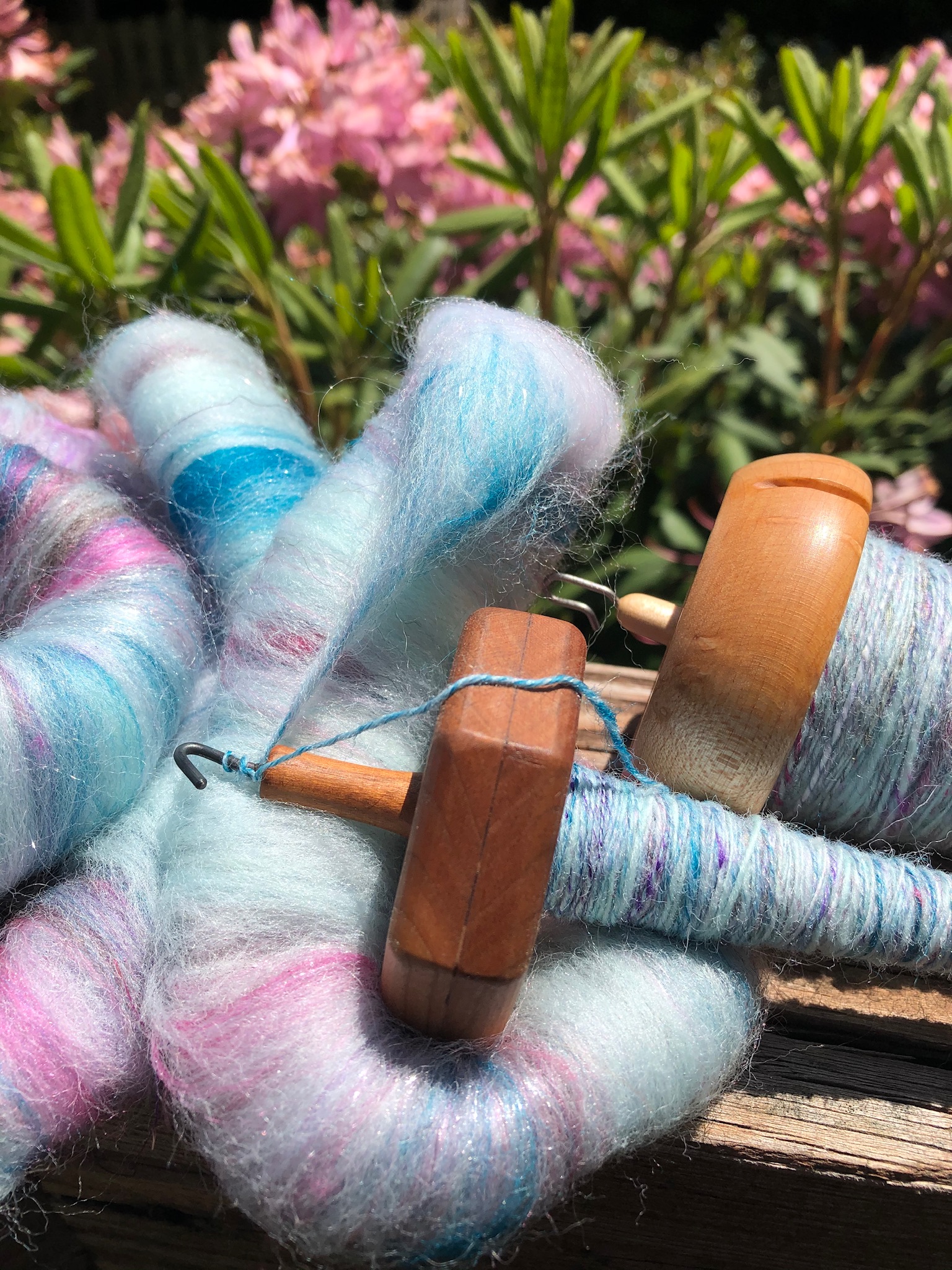 I adore spinning on spindles…drop spindles, Turkish spindles, supported spindles. My favorite drop spindles are Bosworth and Akerworks. I have several Snyder Turkish spindles, and my Silly Salmon Designs spindles are my favorites among the support spindle family.
