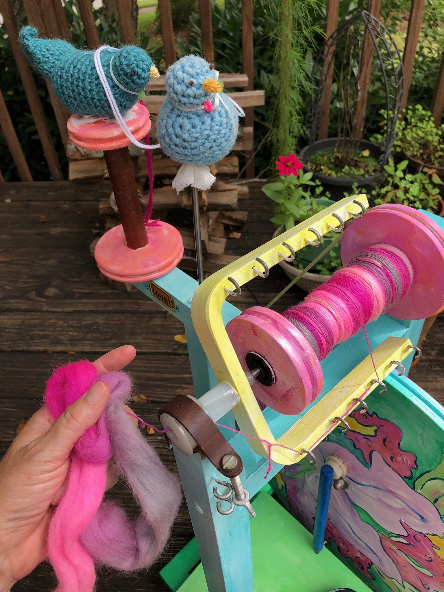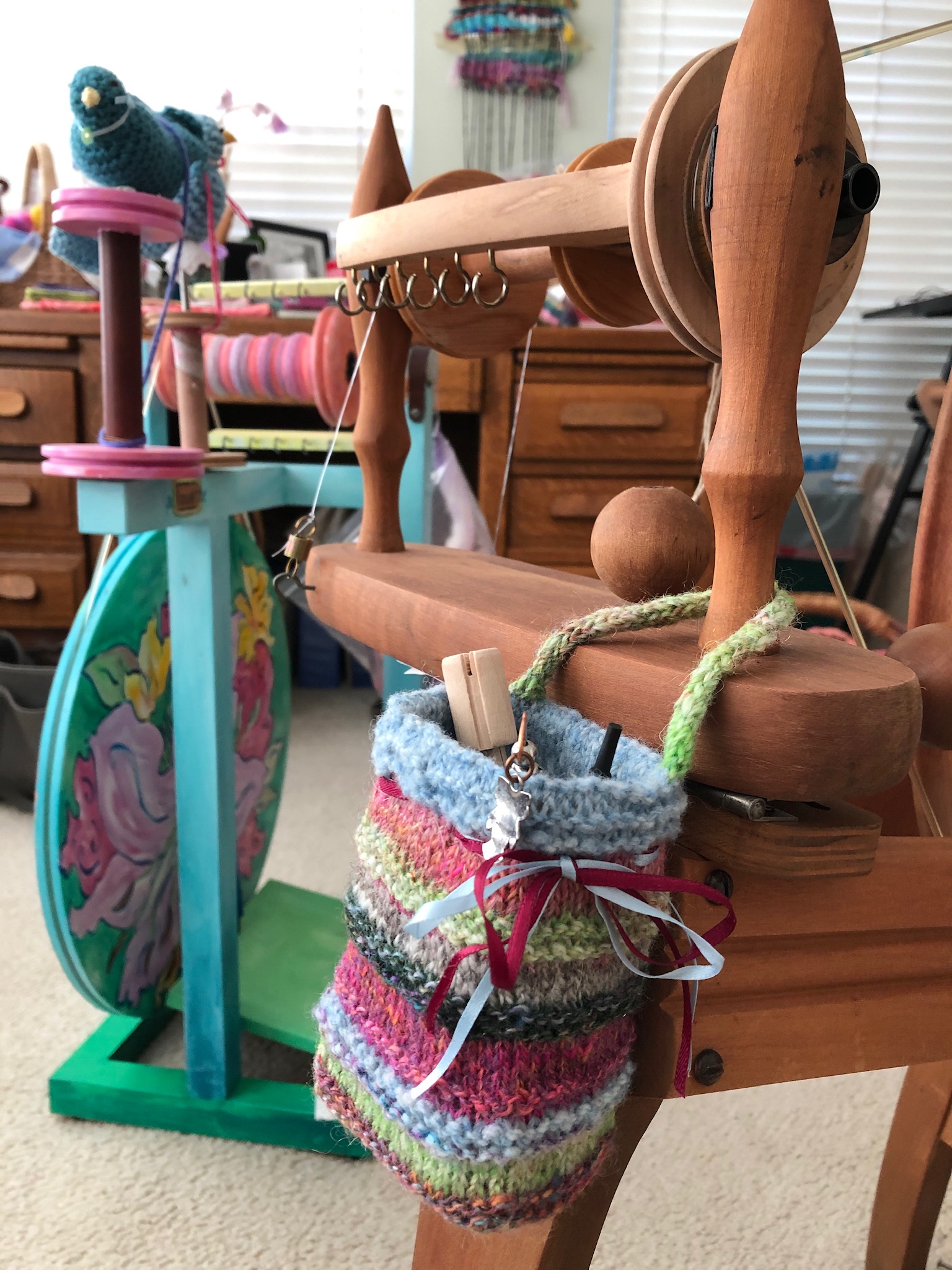 My first wheel was a vintage Louet which I promptly painted as soon as I bought it. It holds a special place in my heart as I can spin any kind of yarn with this wheel. I also have an Ashford Traditional wheel which beautifully spins laceweight to worsted weight yarns.
