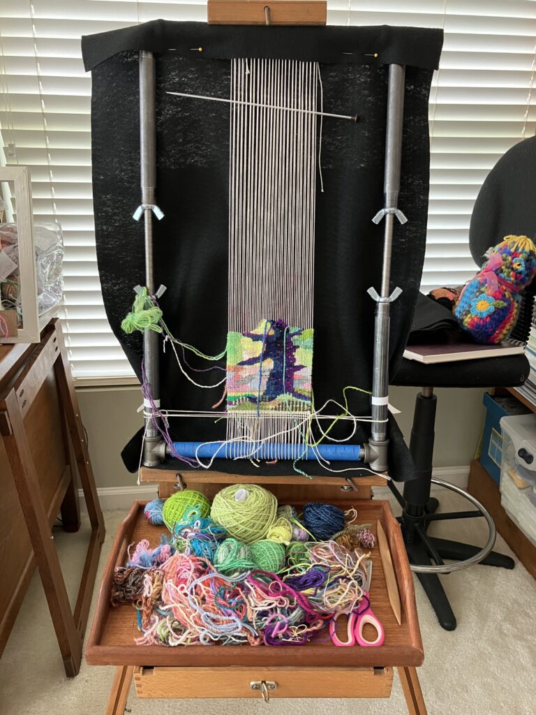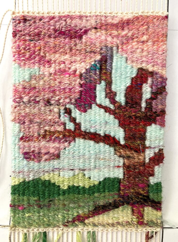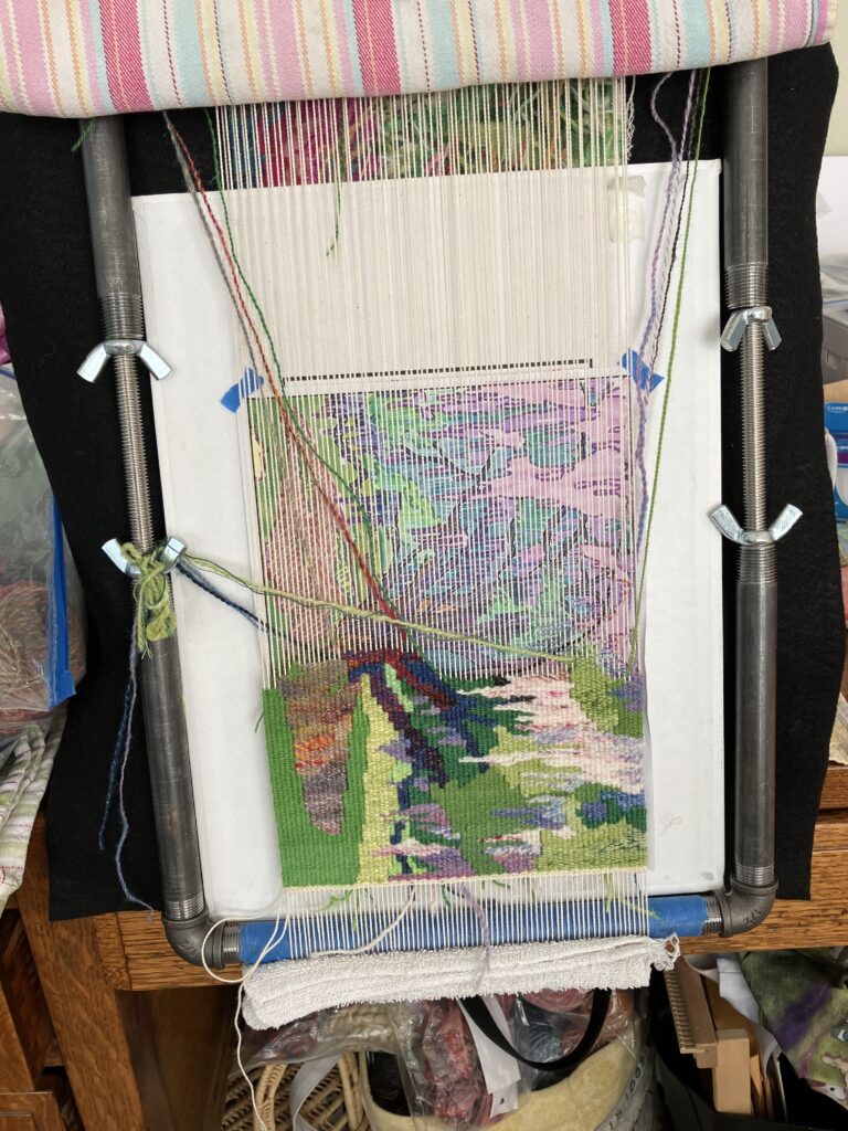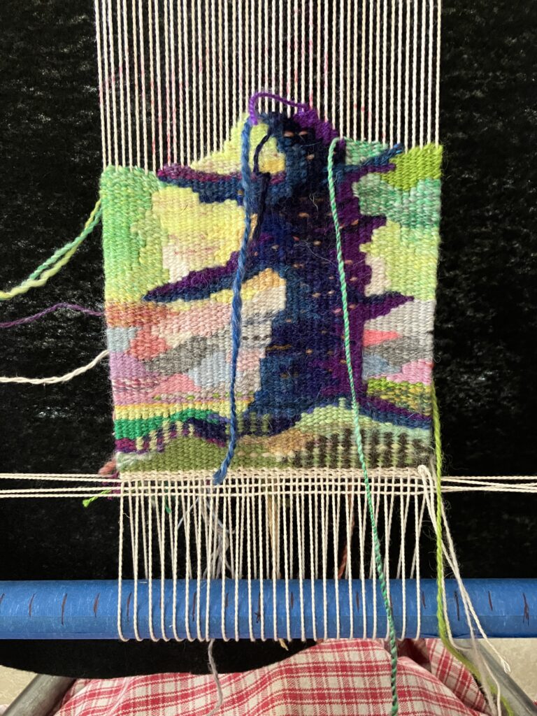 Tapestry weaving is so captivating and requires my full attention over a long period of time. I typically work in small formats to enable me to create the backlog of images I long to weave into being. Here are some of my tapestries, both in process and completed. From time to time I exhibit some of the tapestries and offer them for sale. I no longer work on the large Ashford Tapestry Loom, preferring my handmade pipe loom for its versatility and the ability to disassemble it and stow it away as I spin more yarn and draw my life. Tapestry weaving is simply captivating as I attempt to translate an image onto a grid surface using yarn as paint. I still scratch my head in wonder as to why this peaks my curiosity so much! I suppose it is much like Degas says about art: “…I have spoken to the most intelligent people about art, and they have not understood; but among people who understand, words are not necessary, you say humph, he, ha and everything has been said.ā