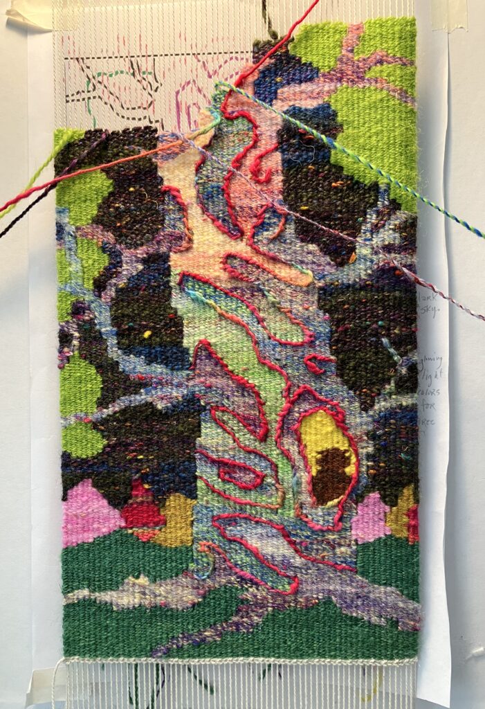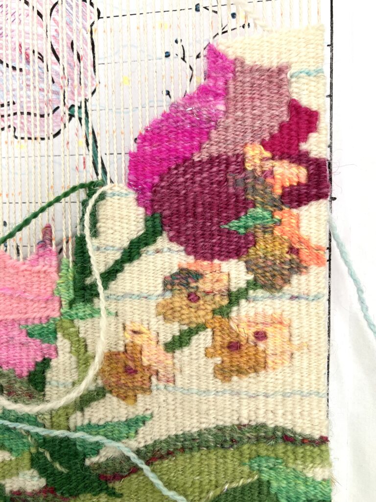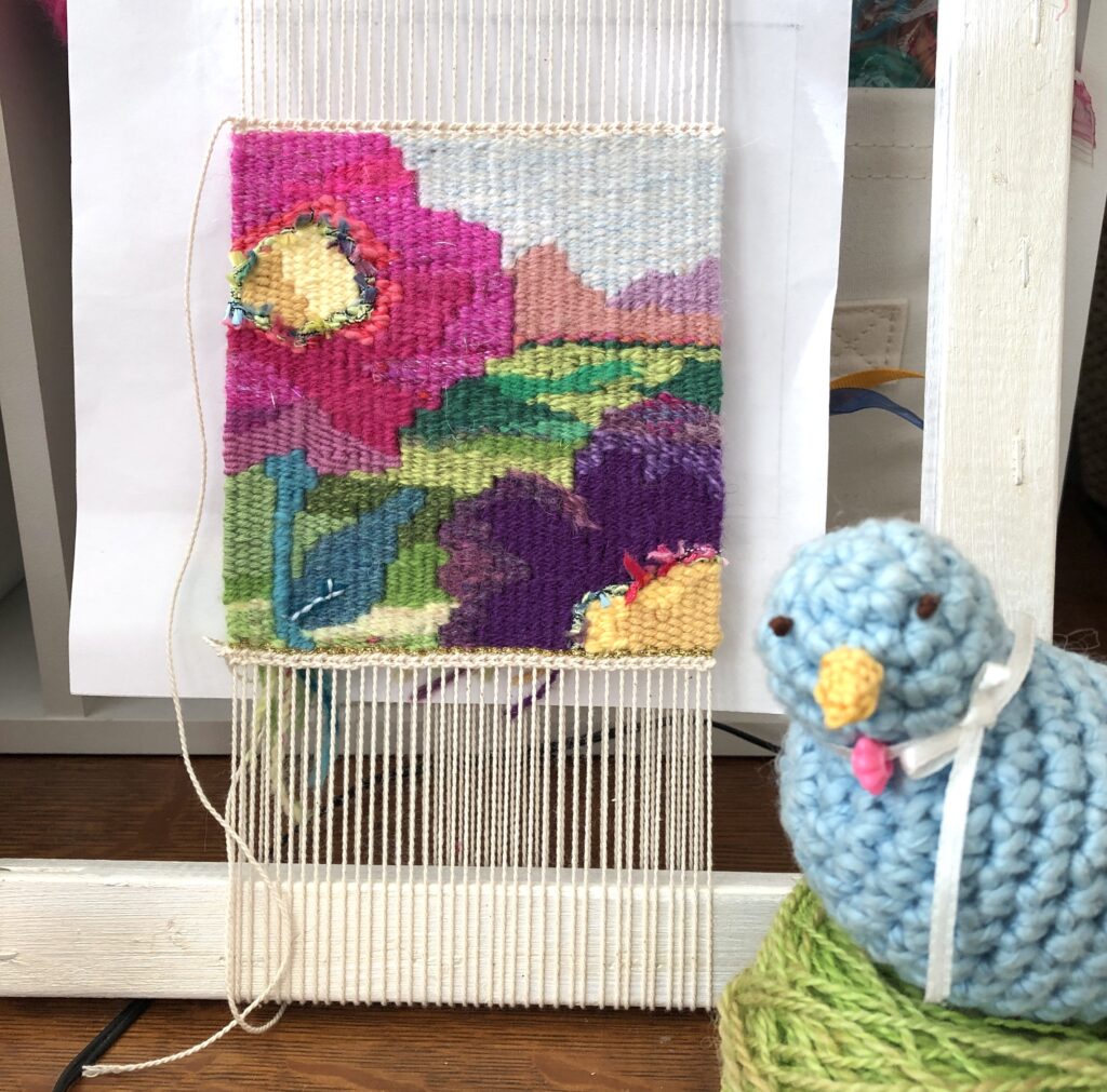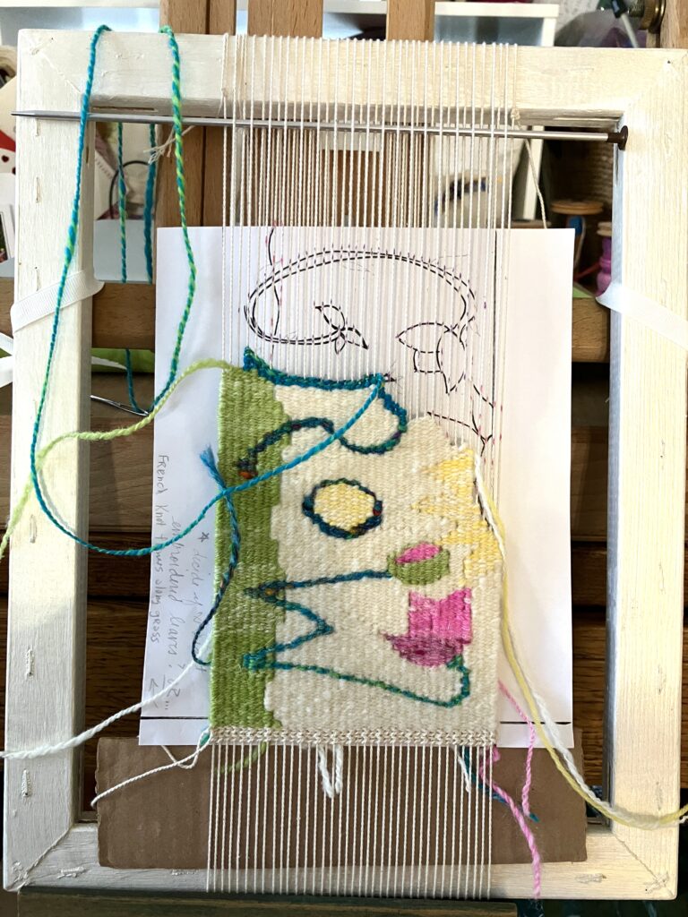 Tapestry weaving is so captivating and requires my full attention over a long period of time. I typically work in small formats to enable me to create the backlog of images I long to weave into being. Here are some of my tapestries, both in process and completed. From time to time I exhibit some of the tapestries and offer them for sale. I no longer work on the large Ashford Tapestry Loom, preferring my handmade pipe loom for its versatility and the ability to disassemble it and stow it away as I spin more yarn and draw my life. Tapestry weaving is simply captivating as I attempt to translate an image onto a grid surface using yarn as paint. I still scratch my head in wonder as to why this peaks my curiosity so much! I suppose it is much like Degas says about art: “…I have spoken to the most intelligent people about art, and they have not understood; but among people who understand, words are not necessary, you say humph, he, ha and everything has been said.ā