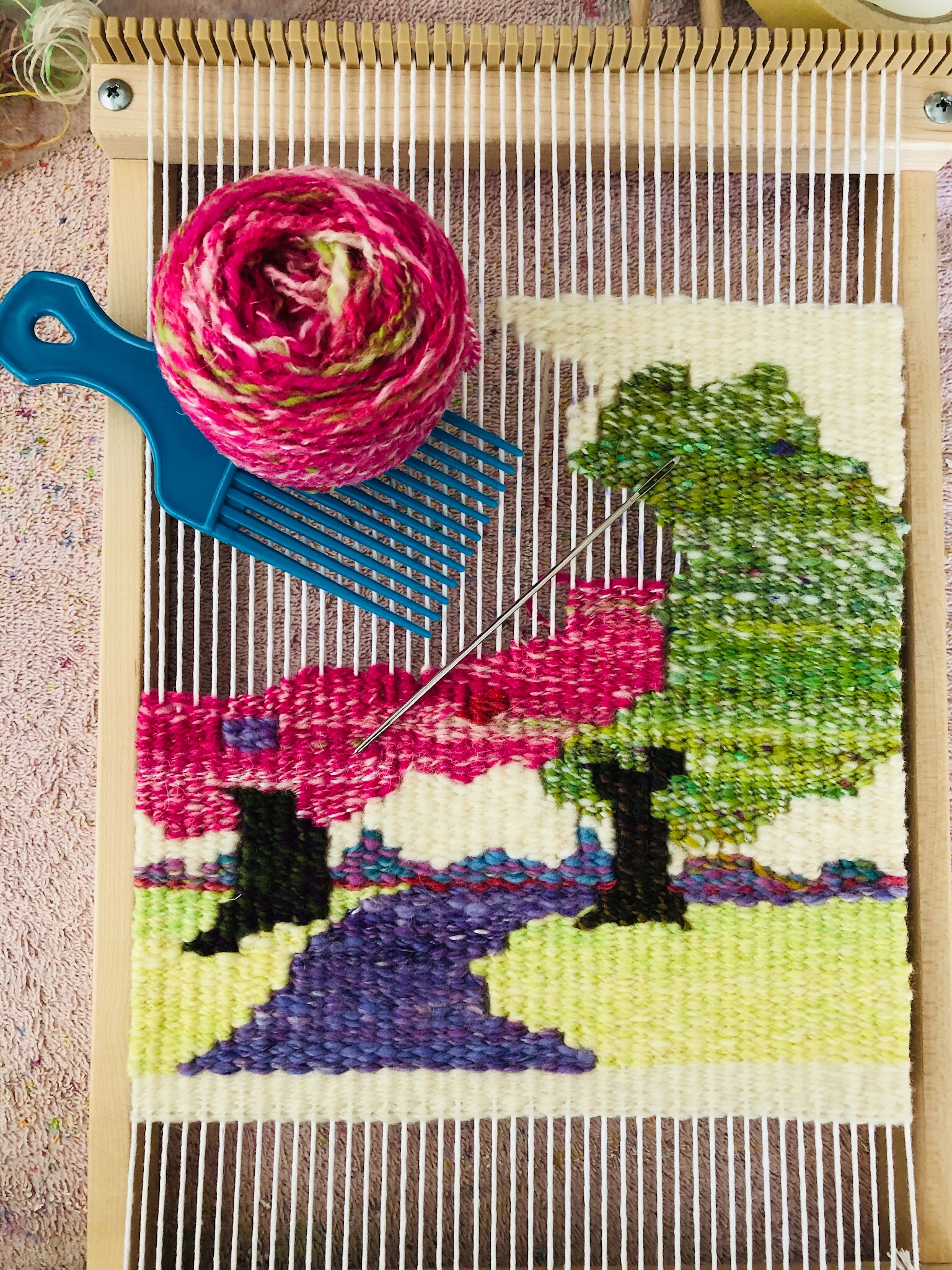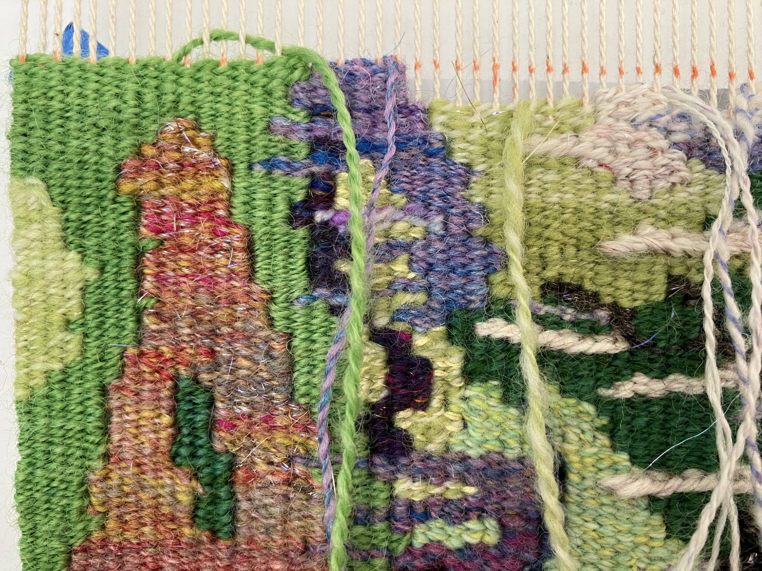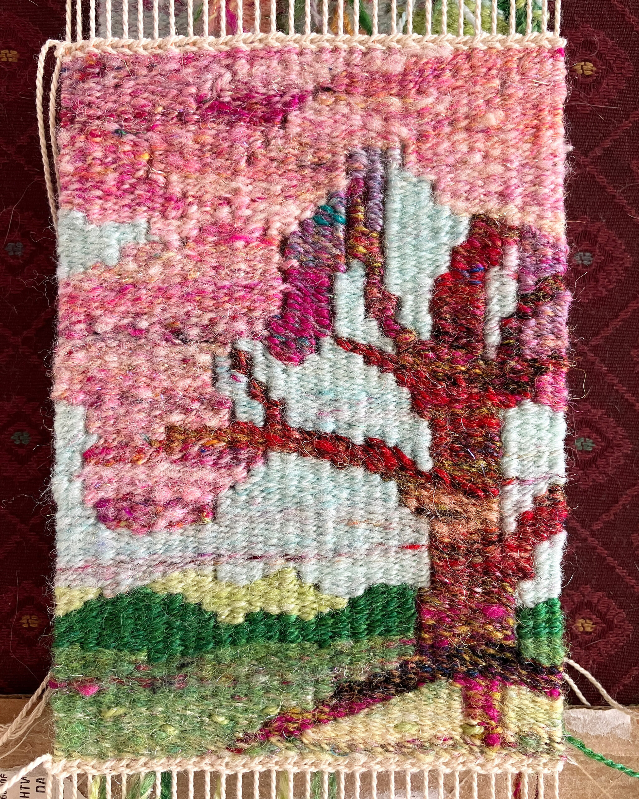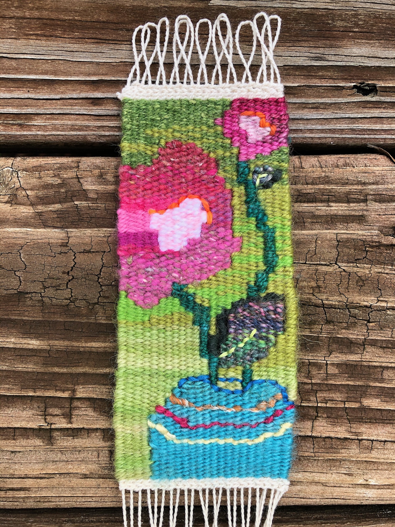 Tapestry weaving is so captivating and requires my full attention over a long period of time. I typically work in small formats to enable me to create the backlog of images I long to weave into being. Here are some of my tapestries, both in process and completed. From time to time I exhibit some of the tapestries and offer them for sale. I no longer work on the large Ashford Tapestry Loom, preferring my handmade pipe loom for its versatility and the ability to disassemble it and stow it away as I spin more yarn and draw my life. Tapestry weaving is simply captivating as I attempt to translate an image onto a grid surface using yarn as paint. I still scratch my head in wonder as to why this peaks my curiosity so much! I suppose it is much like Degas says about art: “…I have spoken to the most intelligent people about art, and they have not understood; but among people who understand, words are not necessary, you say humph, he, ha and everything has been said.ā