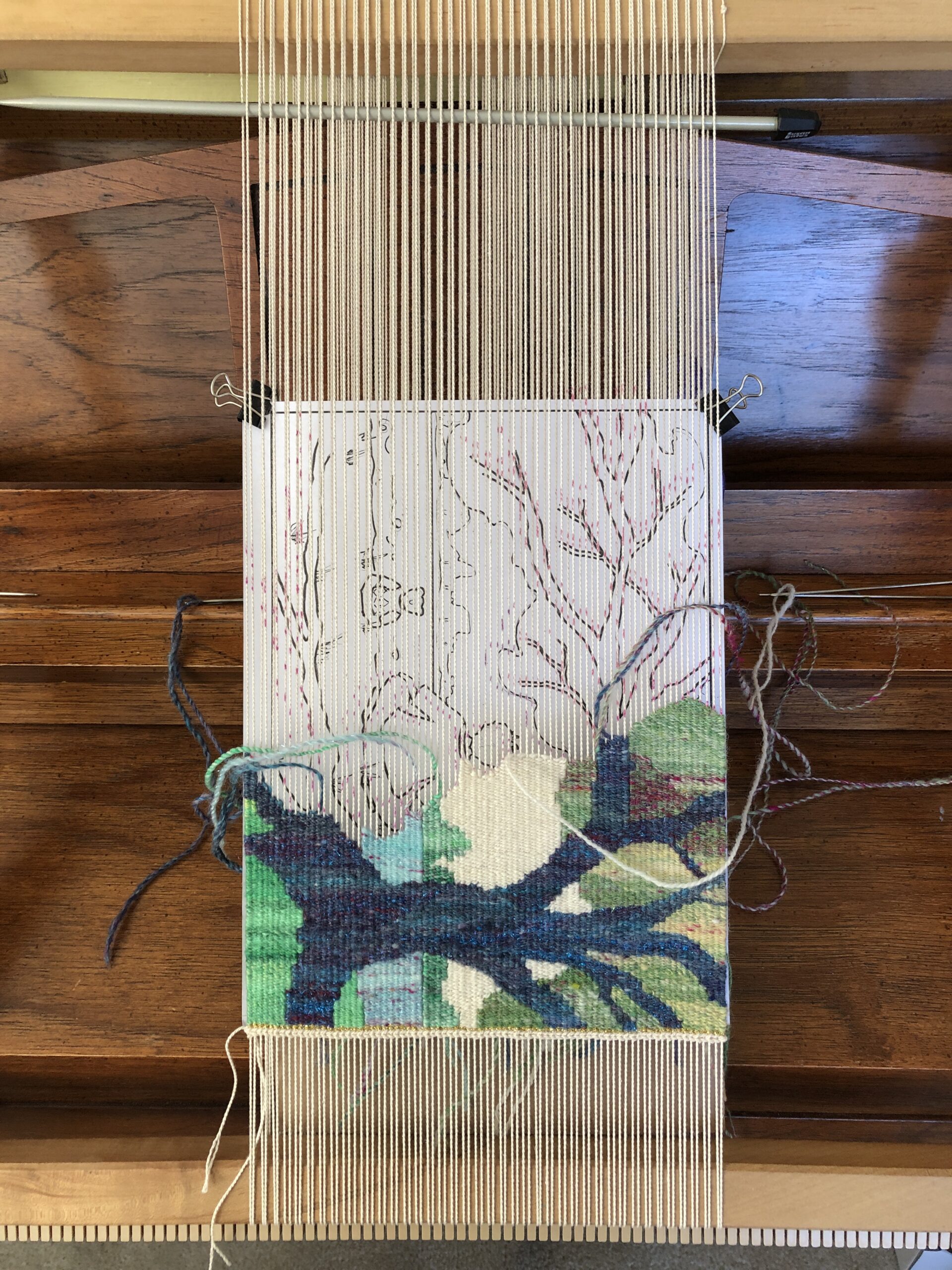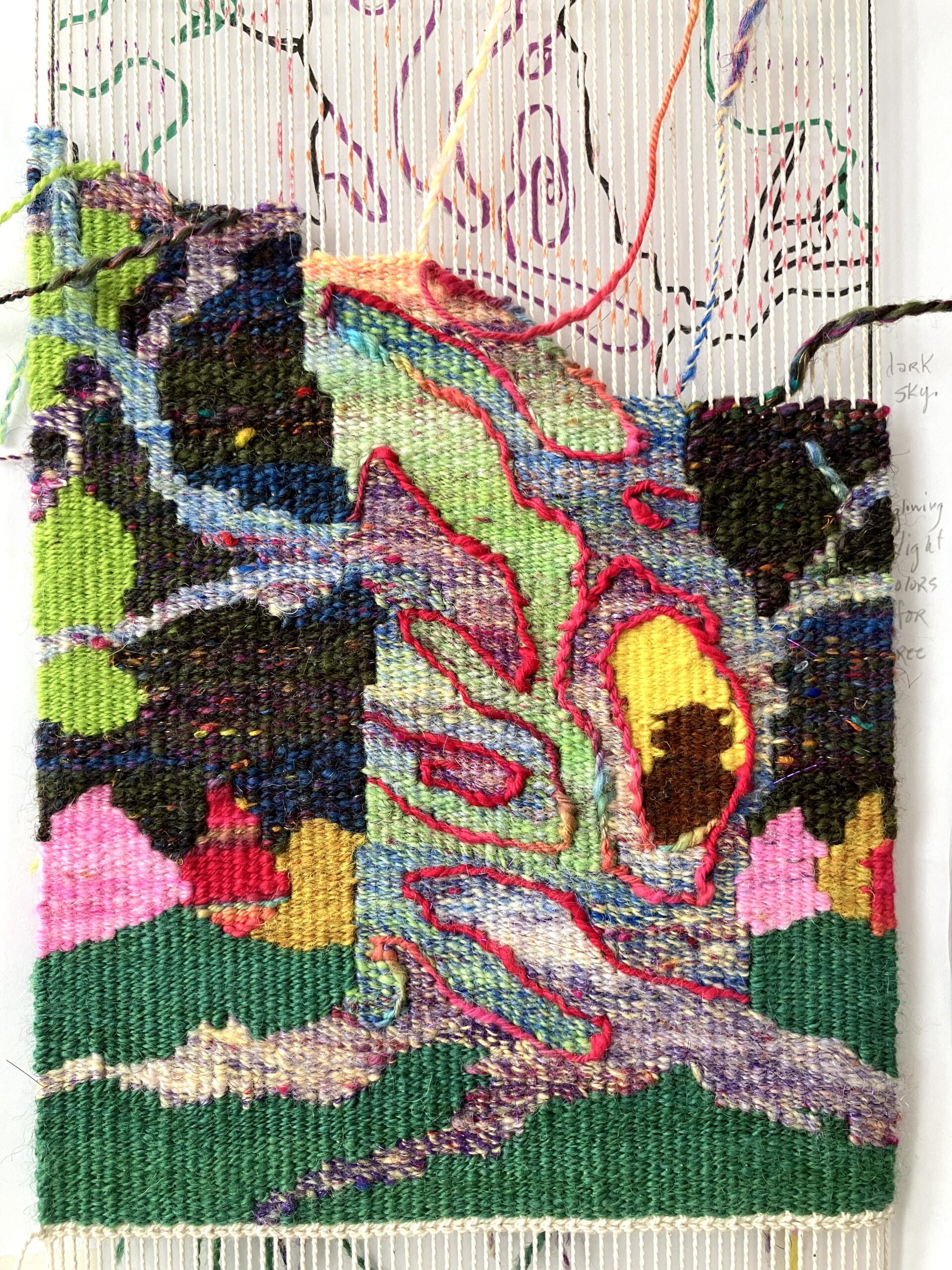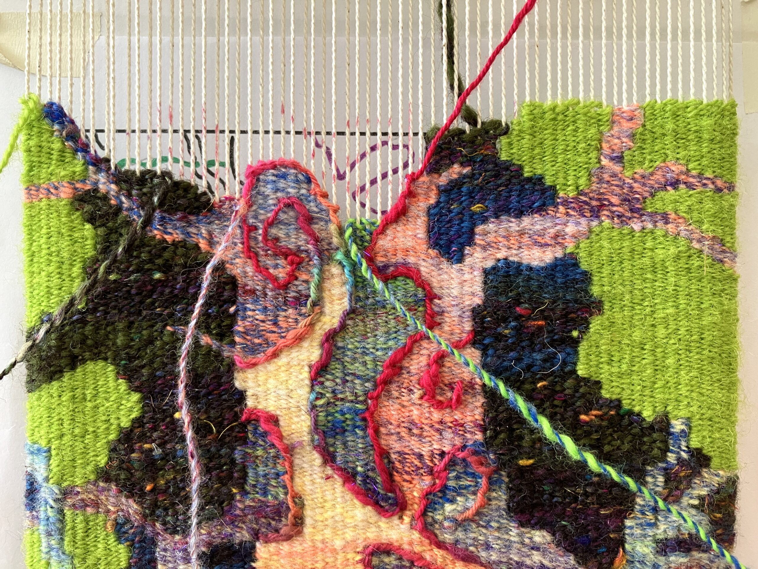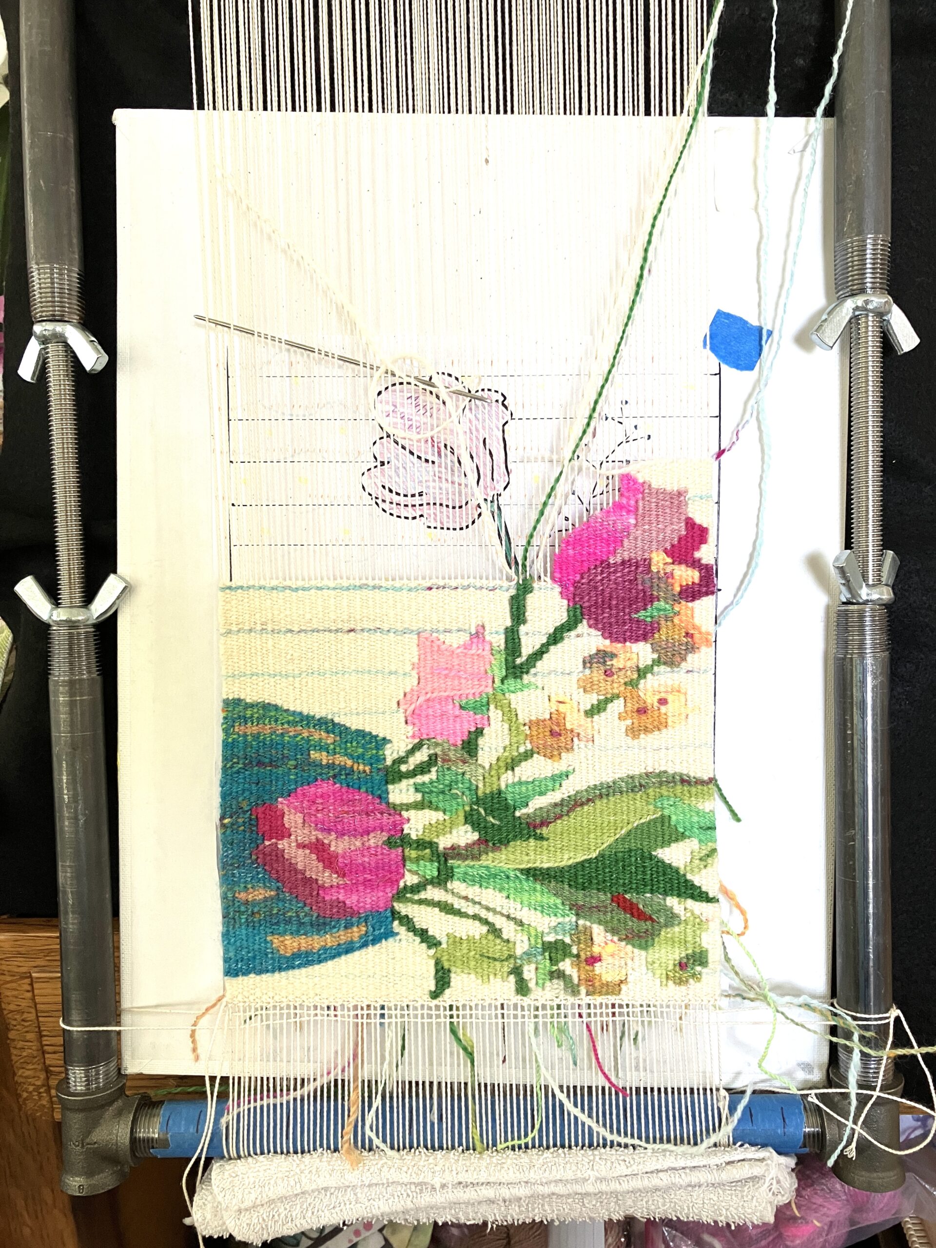 Tapestry weaving is so captivating and requires my full attention over a long period of time. I typically work in small formats to enable me to create the backlog of images I long to weave into being. Here are some of my tapestries, both in process and completed. From time to time I exhibit some of the tapestries and offer them for sale. I no longer work on the large Ashford Tapestry Loom, preferring my handmade pipe loom for its versatility and the ability to disassemble it and stow it away as I spin more yarn and draw my life. Tapestry weaving is simply captivating as I attempt to translate an image onto a grid surface using yarn as paint. I still scratch my head in wonder as to why this peaks my curiosity so much! I suppose it is much like Degas says about art: “…I have spoken to the most intelligent people about art, and they have not understood; but among people who understand, words are not necessary, you say humph, he, ha and everything has been said.ā