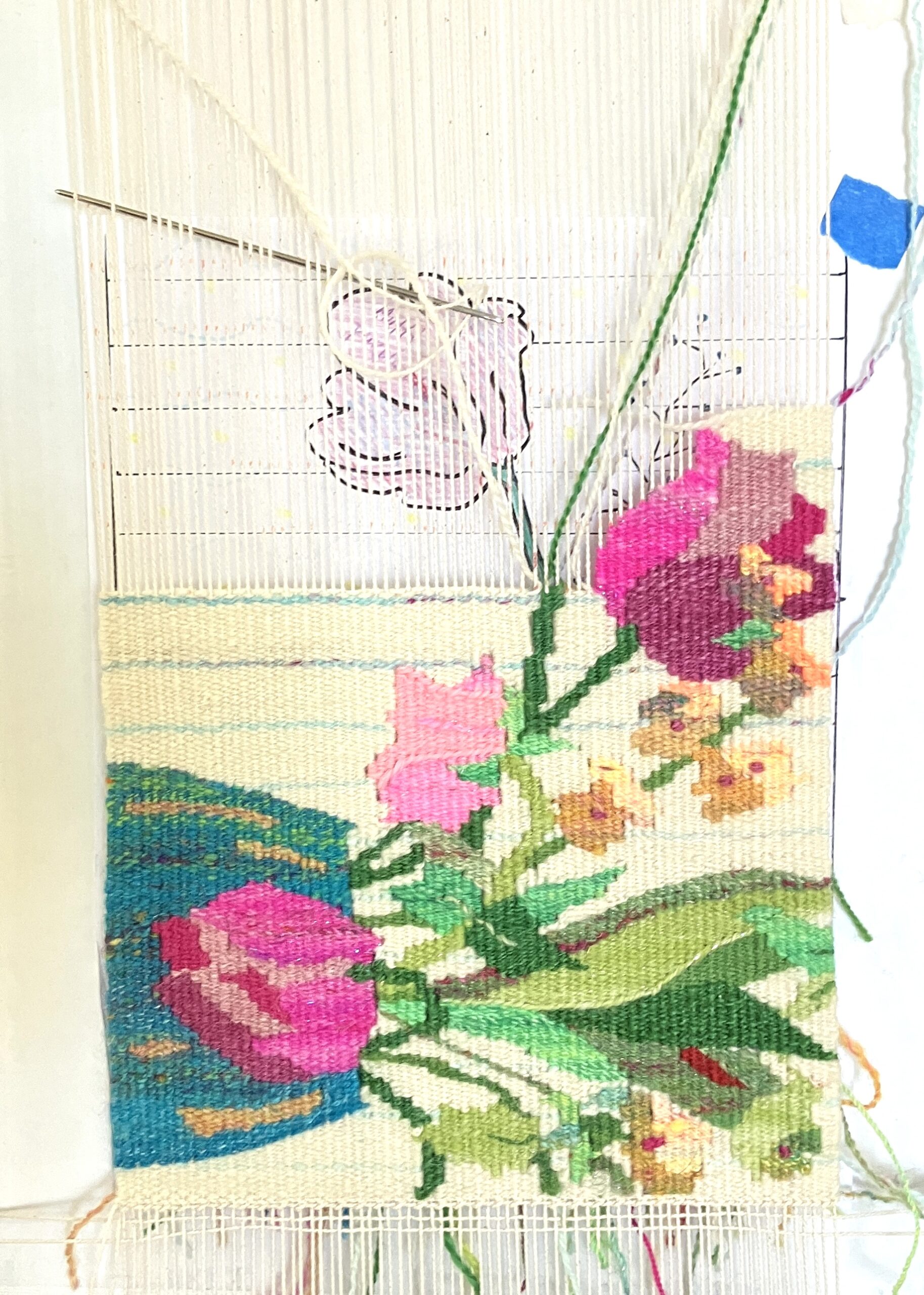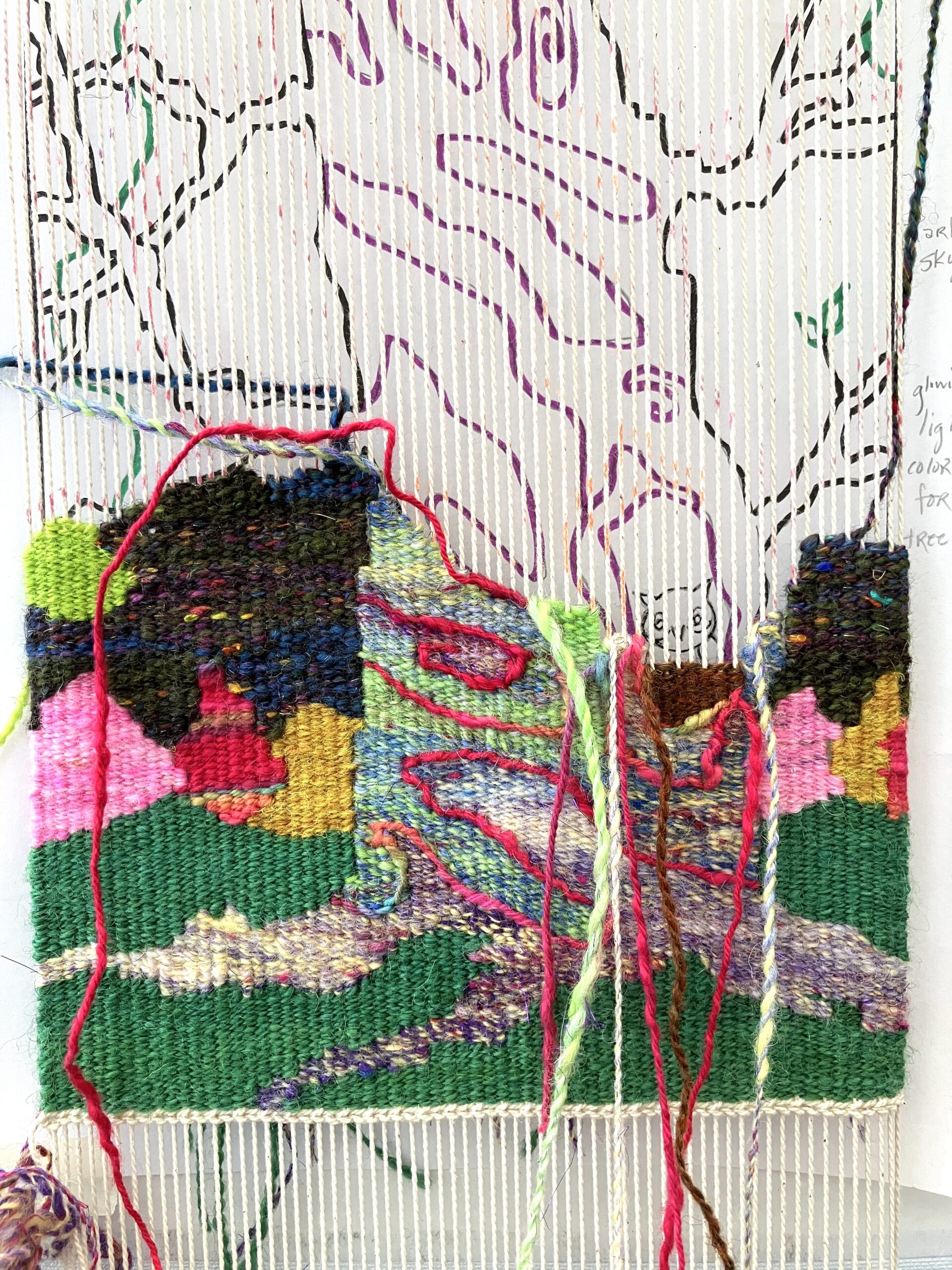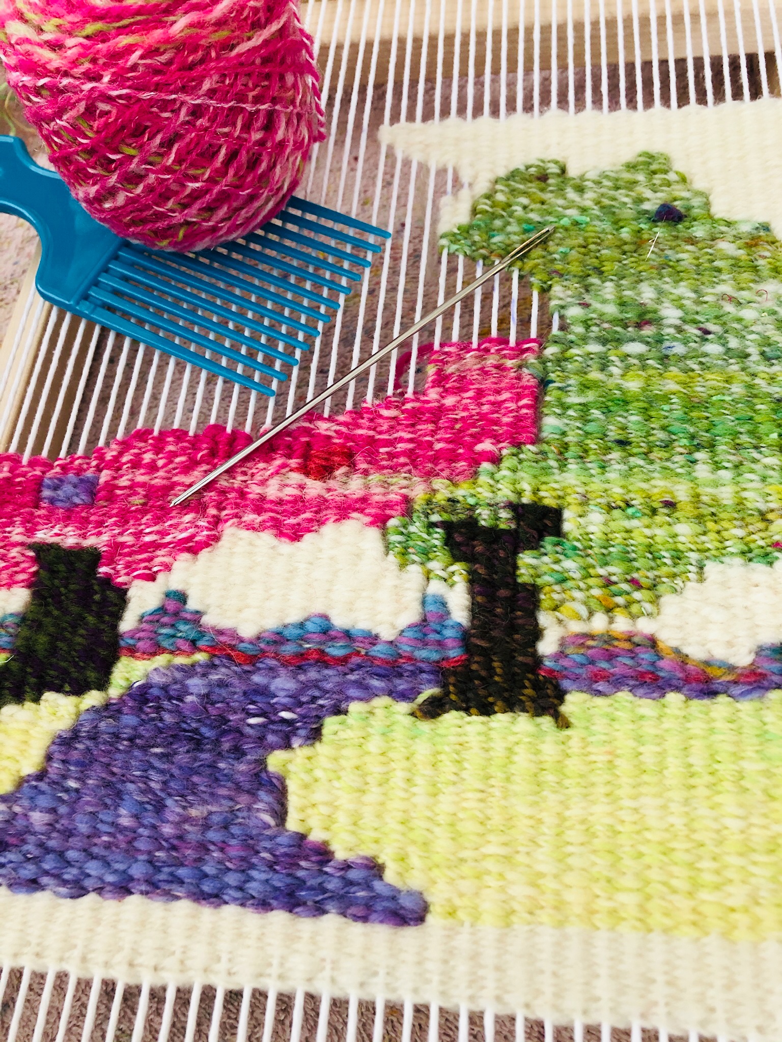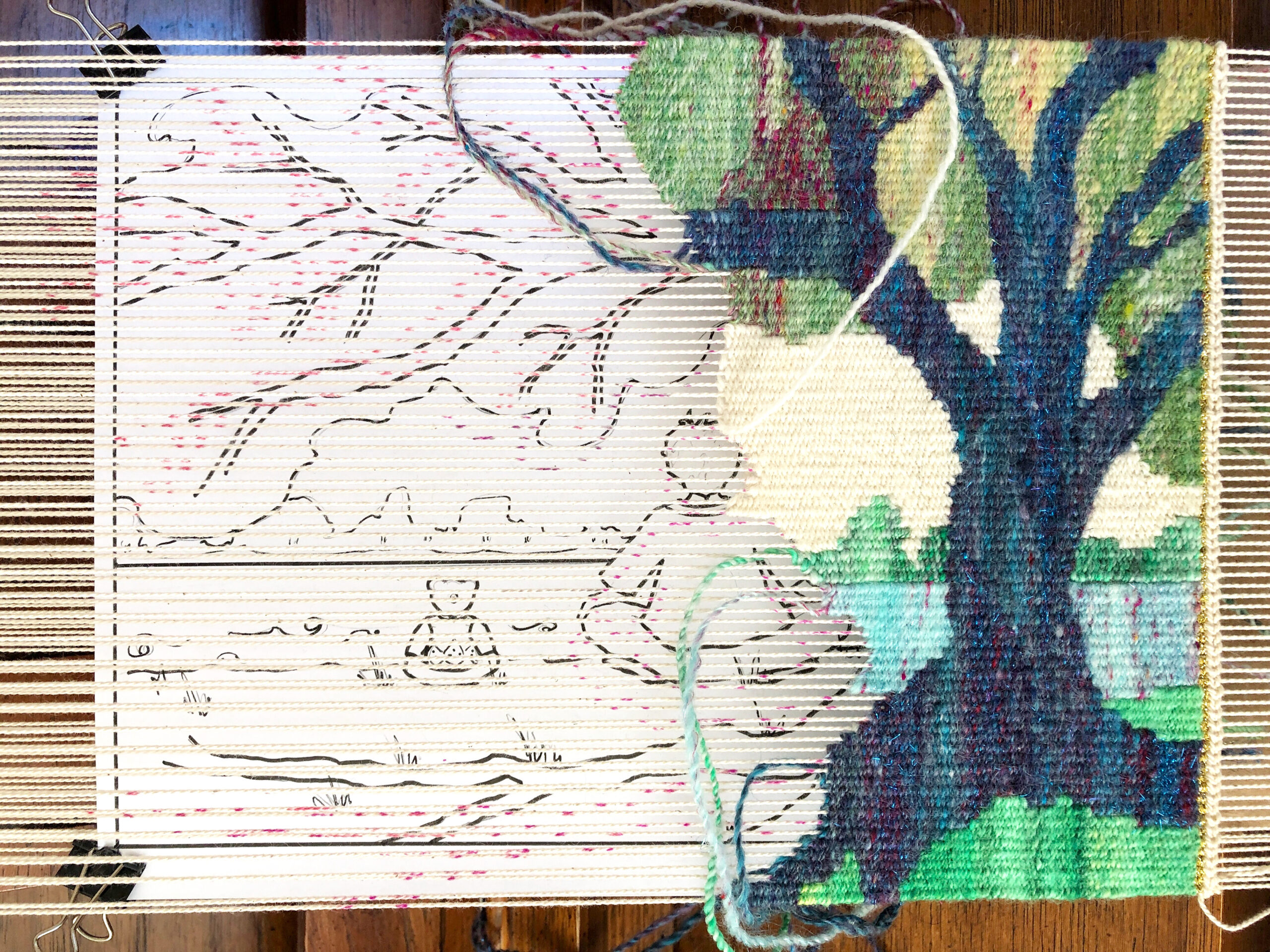 Tapestry weaving is so captivating and requires my full attention over a long period of time. I typically work in small formats to enable me to create the backlog of images I long to weave into being. Here are some of my tapestries, both in process and completed. From time to time I exhibit some of the tapestries and offer them for sale. I no longer work on the large Ashford Tapestry Loom, preferring my handmade pipe loom for its versatility and the ability to disassemble it and stow it away as I spin more yarn and draw my life. Tapestry weaving is simply captivating as I attempt to translate an image onto a grid surface using yarn as paint. I still scratch my head in wonder as to why this peaks my curiosity so much! I suppose it is much like Degas says about art: “…I have spoken to the most intelligent people about art, and they have not understood; but among people who understand, words are not necessary, you say humph, he, ha and everything has been said.ā