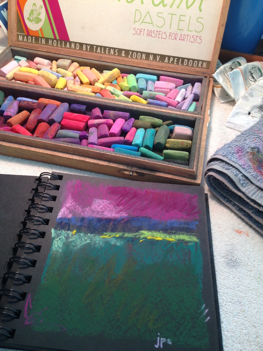 *In the first pic up there, you see my small pastel box. I have a much larger one I pull out for large scale paintings. But this one was a gift from my grandmother many many years ago when I was maybe 9 or 10 years old. It has since been refilled with different pastels, but I love it as it reminds me of my artist grandmother Thelma who not only painted with pastels, but also knitted beautiful things.